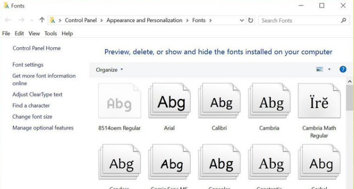 Step 2 – Open the Windows 10 → Windows → Fonts folder. Then drag the TTF font into the folder. You can easily find the folder by clicking in the search box (Cortana box), typing “fonts,” and then opening Fonts in the Control panel.