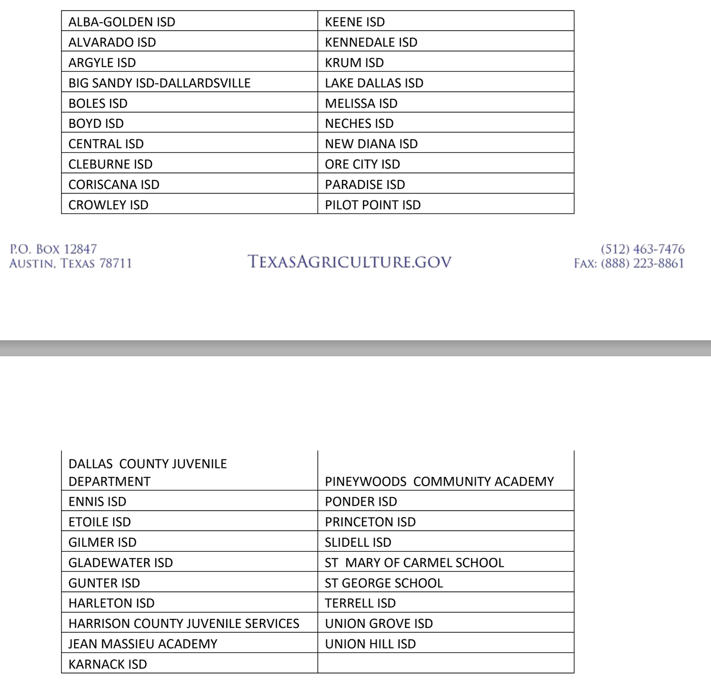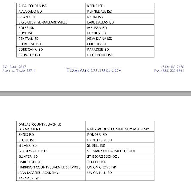 The Texas Department of Agriculture oversees school breakfast and lunch programs, which is why school districts were affected. (Source)