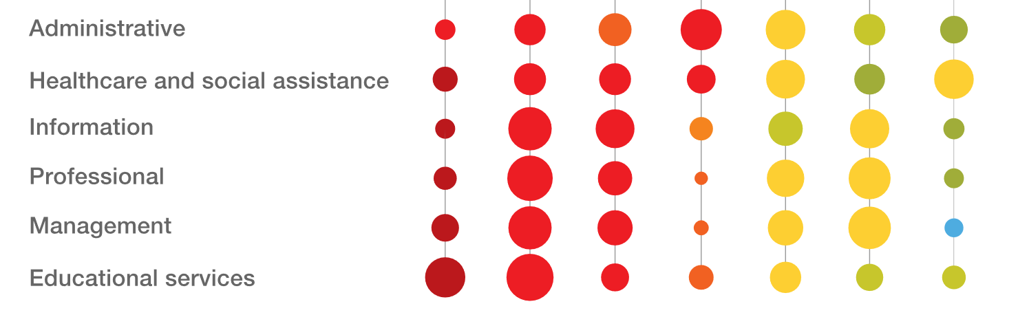 The importance of human interaction is evident in two sectors that, so far, have a relatively low technical potential for automation: healthcare and education.