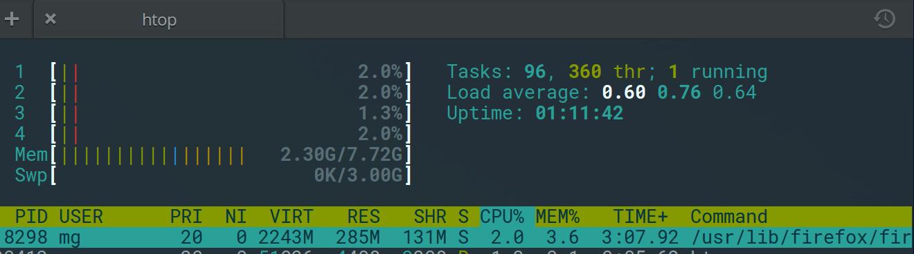 In truth, not much. Oh, I forgot to add HTOP. As you can see from the screen below, not much happening.