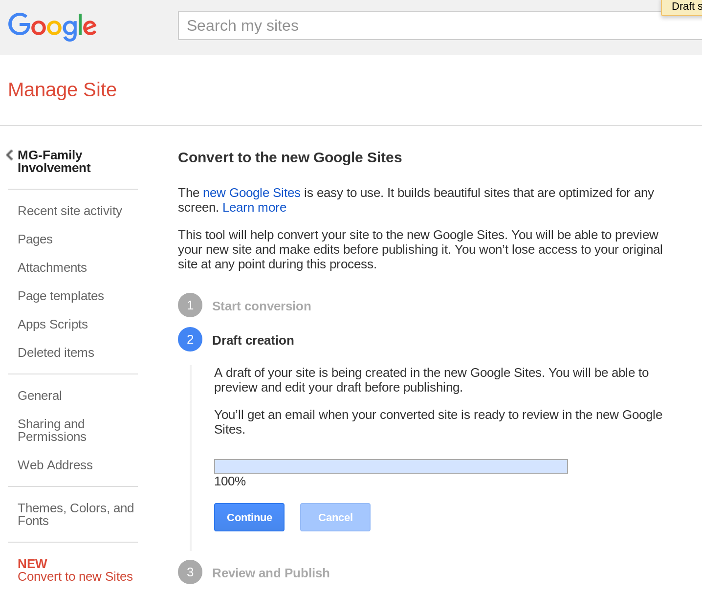 You can find the converted site online at https://sites.google.com/site/mgfamilyinvolvement/home