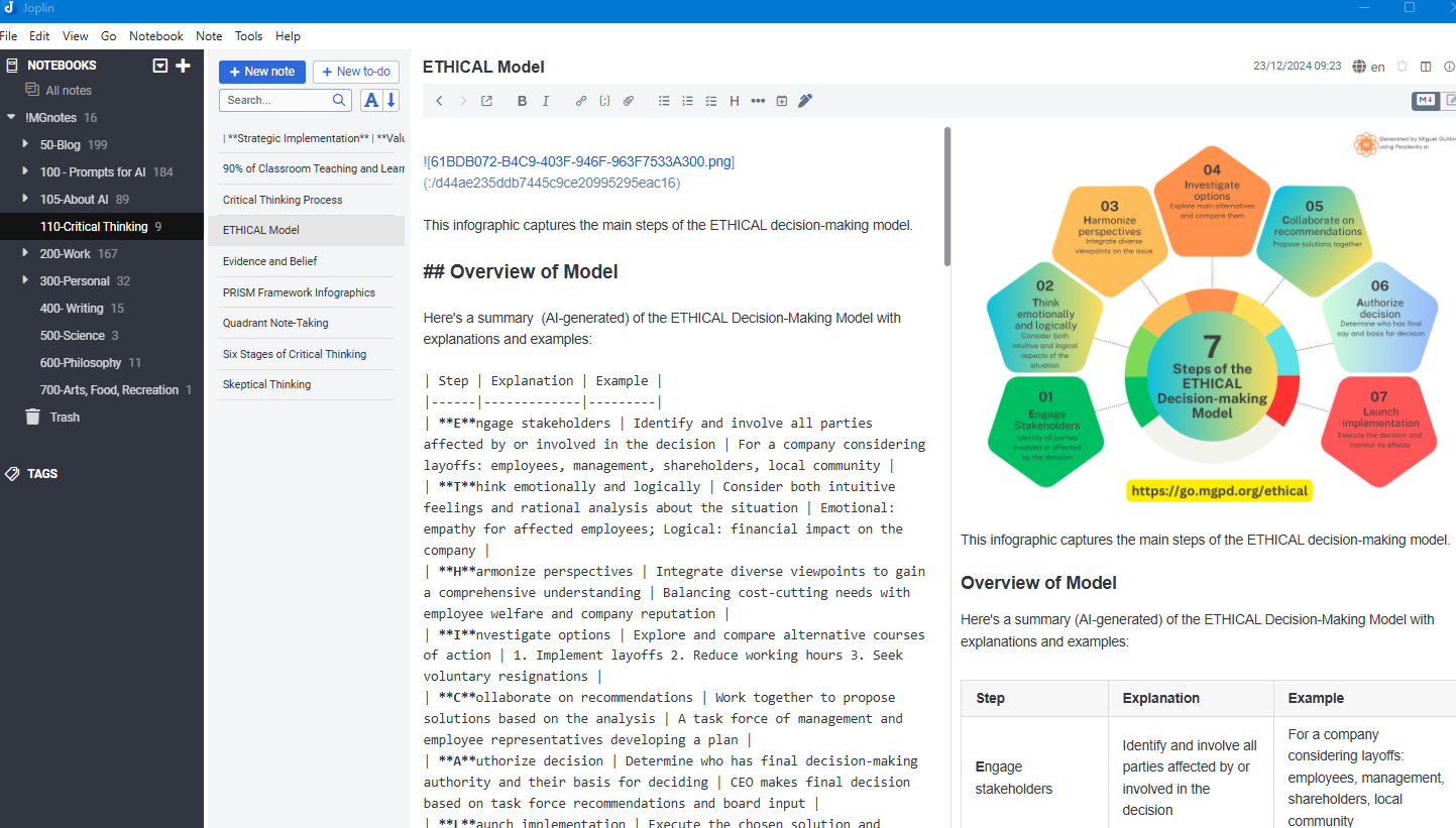 I absolutely love using Joplin Notes on my iPhone, Windows, and Zorin Core Linux devices. Alas, it won’t work on a Chromebook, but that’s OK for me. I decided to spring for the Joplin Notes cloud account, and it works flawlessly. Since I need a cross-platform note-taking and archival tool (where do you think I store all my long prompts for Gen AI chatbots, not to mention blog entry backups, critical to-do lists, etc.?), I rely on Joplin, a brand new free, open source note-taking tool I just found out about. It’s not exactly free for me since I pay for the annual account, but it’s free for anyone to get started with.