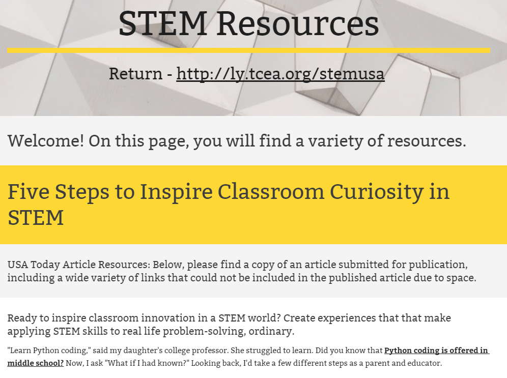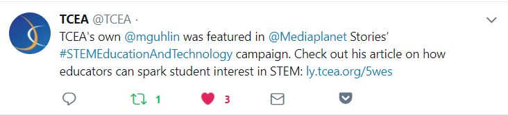 Please allow me to share some exciting news with you (as well as an article). The June, 2018 issue of USA Today’s Education and Career News MediaPlanet posted an article I wrote for my work with TCEA. I’m delighted to share it with you, and grateful to TCEA’s Lori Gracey and Susan Meyers (editor) for their support.