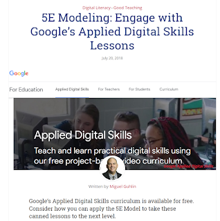 Are you ready to embrace the 5E Lesson Planning Model? I’ve written a few blog entries about the 5E Lesson Planning Model and blending technology into it. You probably will want to read the whole series, but here’s one I wrote about 5E Modeling: Engage with Google’s Applied Digital Skills Lessons.