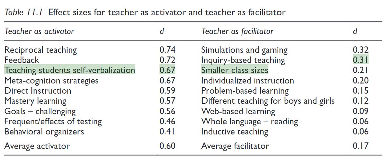 “We have a wide array of instructional strategies implemented,” Terri said. “We use depth and complexity to improve student understanding.” Like this fourth grade educator, many educators rely on classroom instructional strategies. These strategies differ in effectiveness, as John Hattie’s meta-analysis shows. Often, these most effective strategies are unknown to classroom teachers. This blog entry suggests one way to introduce them to effective strategies.
