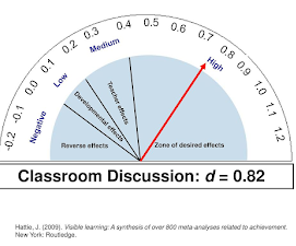 Hattie’s research found that classroom discussion (equal parts talking by students and the teacher) has an effect size of .82.