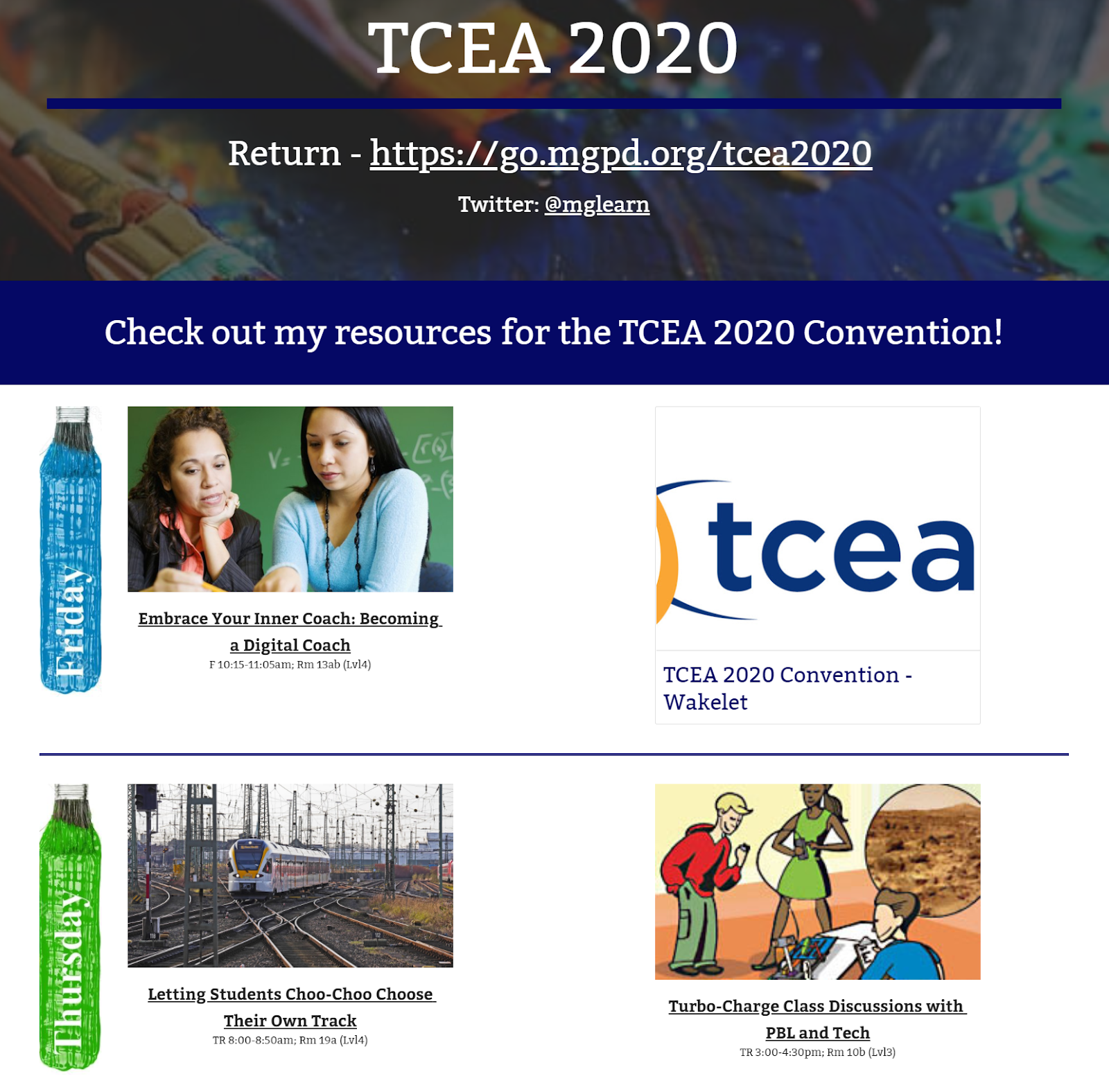 | See my Monday-Friday resources at https://go.mgpd.org/tcea2020 |