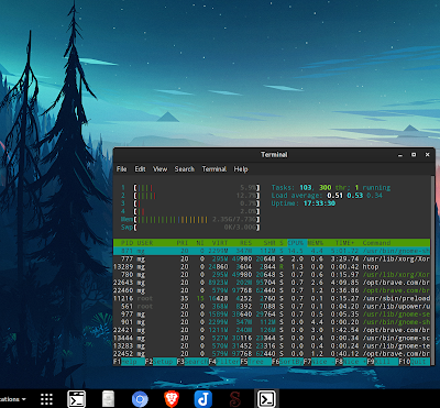 The resolution on a Surfacebook, however, is set too high. That’s a bad thing. Openbox, XFCE, LXDL simply don’t work well on Surfacebook. So, for fun, I went ahead and loaded Gnome (I dislike KDE) then stripped out Openbox, and anything else that Gnome brought in that wasn’t needed. I disabled extensions, loaded Brave, Chromium for my browsers (removing Firefox), and found a light wallpaper.
