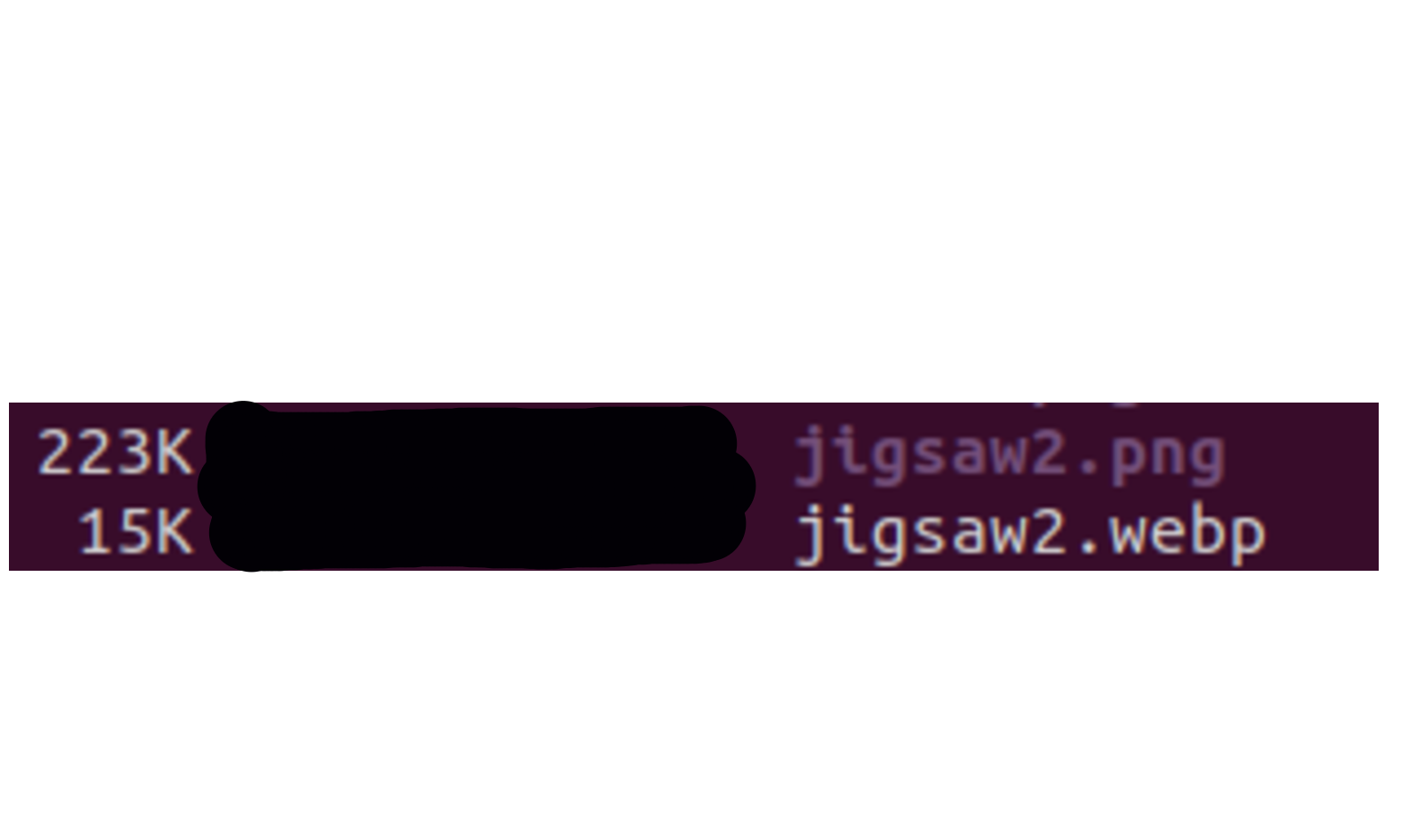 Now, for fun, here’s a screenshot of a list of files showing the difference in size for “jigsaw” image files…this image below is the PNG version, at 177K in PNG format: