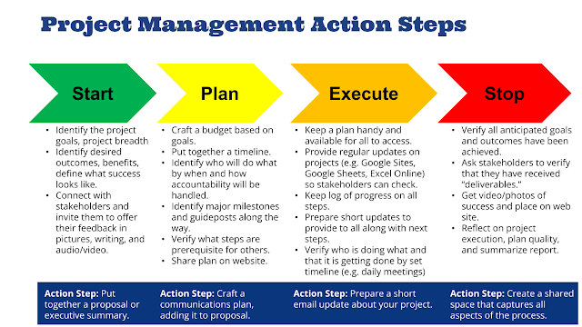 It’s fun to reflect on past projects, and what lessons you learned from them. This Action Steps chart captures lessons I learned over years of implementing technology projects. Each line under the action steps reveals a lesson learned, an “Aha!” moment that was hard earned. I’m grateful for the lessons.