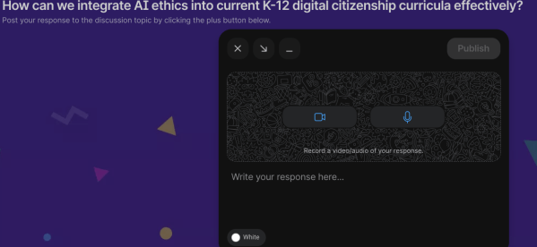 Padlet offers the Discussion Board option, as you can see in the image above. Below, you can see an example Padlet where you can leave a message using Padlet’s video option, which you can see is one of the options in the plethora of choices available: