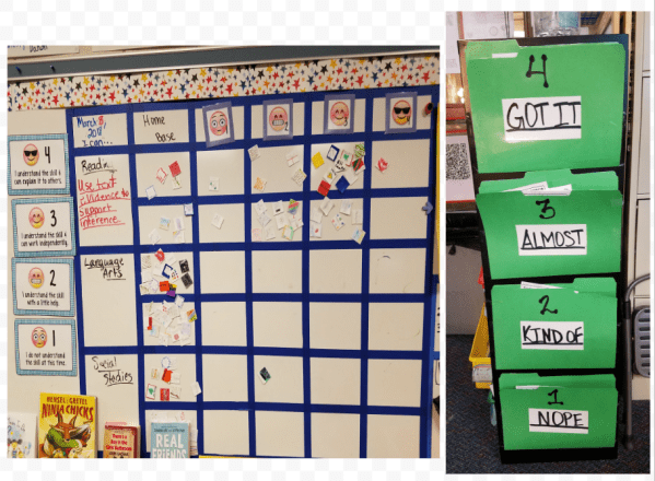 Lynsy was kind enough to share this picture of students gauge and report on their understanding throughout the day; I include it below with her permission: