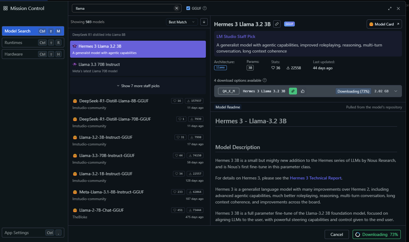 Running Hermes-3-Llama model, by the way, was lightning fast and got me these results: