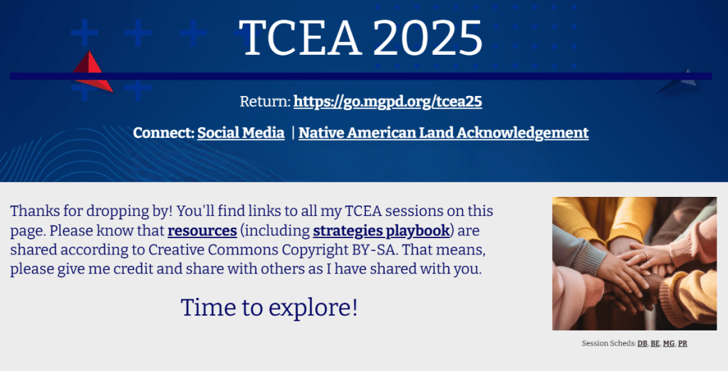 Access session presentation schedules for other amazing folks: DB, BE, PR. Drop into their session and say “Miguel says, ‘Hello!'” then get a selfie with them and post with the TCEA hashtag #TCEA and tag me on BlueSky (@mguhlin.bsky.social)