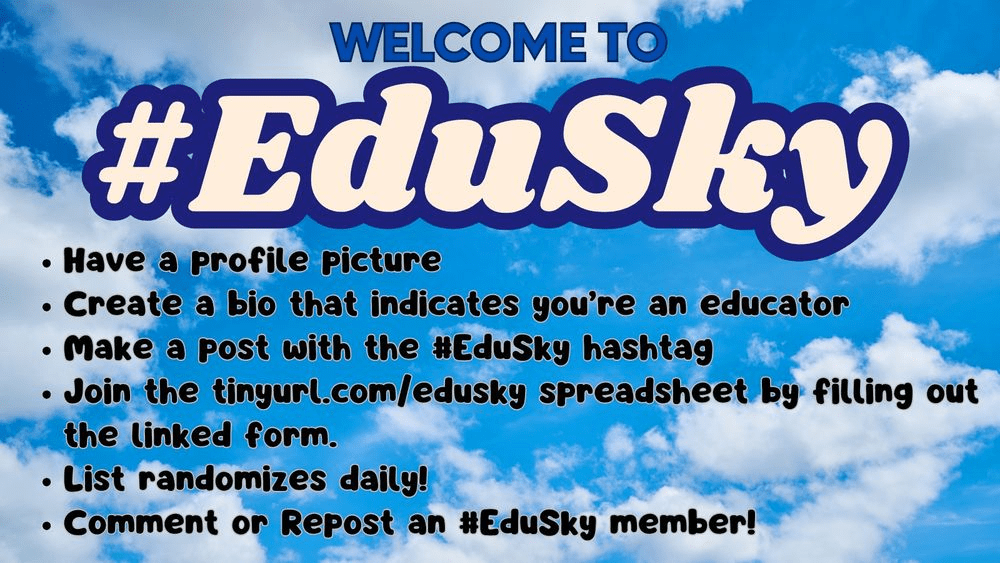 Welcome to #EduSky 🍎 a communuty for educators! Check out the list: tinyurl.com/EduSky Join the list: tinyurl.com/EduSkyForm Pin the feed: tinyurl.com/EduSkyFeed
