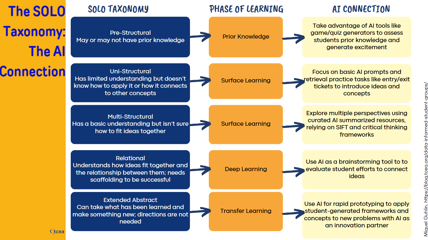 My favorite slide in this presentation is The SOLO Taxonomy and the AI Connection. I really see the application of the SOLO Taxonomy to these new areas (AI) as quite important and necessary.