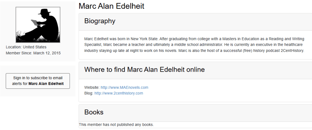 I had hoped to find Marc Alan Edelheit on Smashwords, but no luck. Worse, his blog link is obsolete, but not his book site.