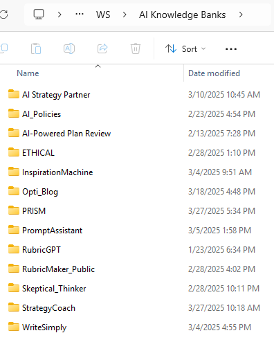 Now that I have generic Knowledge Stack folders with files, I have re-created them in various AI chatbots (e.g. ChatGPT Custom GPT, Boodle Box, Perplexity, Gemini Gems, Local AI). Having a local copy has made things so much easier.