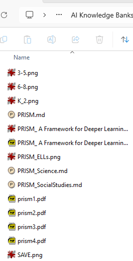 * Assist in blog post generation and professional learning resources, drawing from the PRISM-aligned rubric, AI in education applications, and practical examples for subjects like science, writing, and more.
