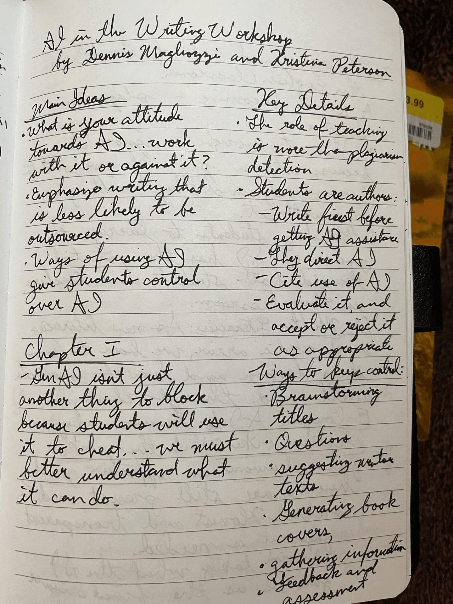 Overall, I found the ideas shared in AI in the Writing Workshop to be in line with the spirit of writing workshop.
