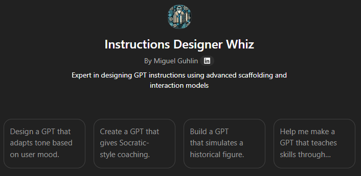 - Easy to use wizard that coaches you on creation of the GPT, offering suggestions as it goes