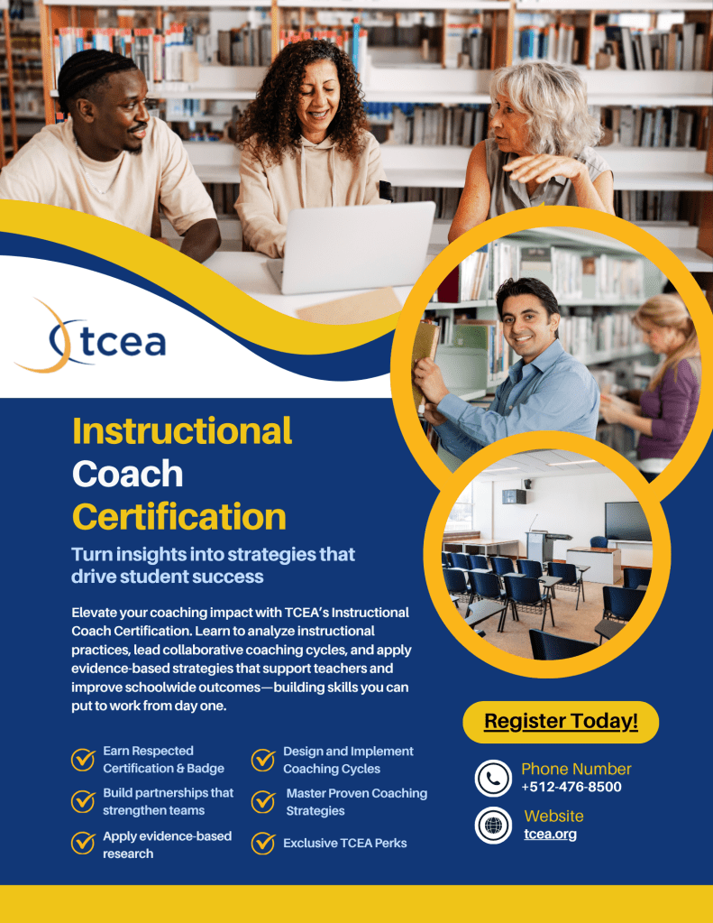 […] TCEA Instructional Coach Certification and Teaching Edtech — What coaches gain from a structured certification and how that translates to classroom impact. […]