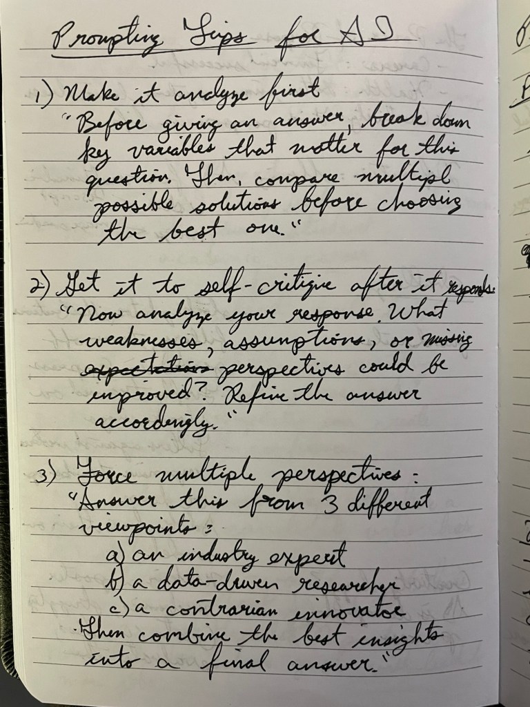 “Answer this from 3 different viewpoints: a) an industry expert b) a data-driven researcher c) a contrarian innovator Then combine the best insights into a final answer.”