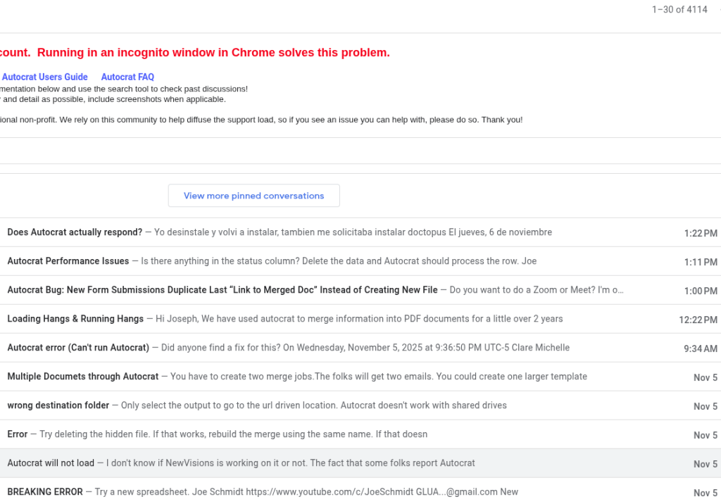 If you’ve suffered anxiety over Autocrat stalling on Google Forms recently (and a lot of folks have, including me), you may be wondering, “What gives?” How could Autocrat, an amazing tool for automating mail merges for tons of uses, suddenly stop working reliably?