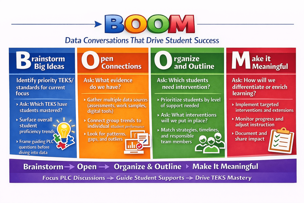 Hoping that ChatGPT and I finally got this right, I decided to try one more infographic based on a blog entry, Five Questions Texas Educators Should Ask About Data. The prompt: