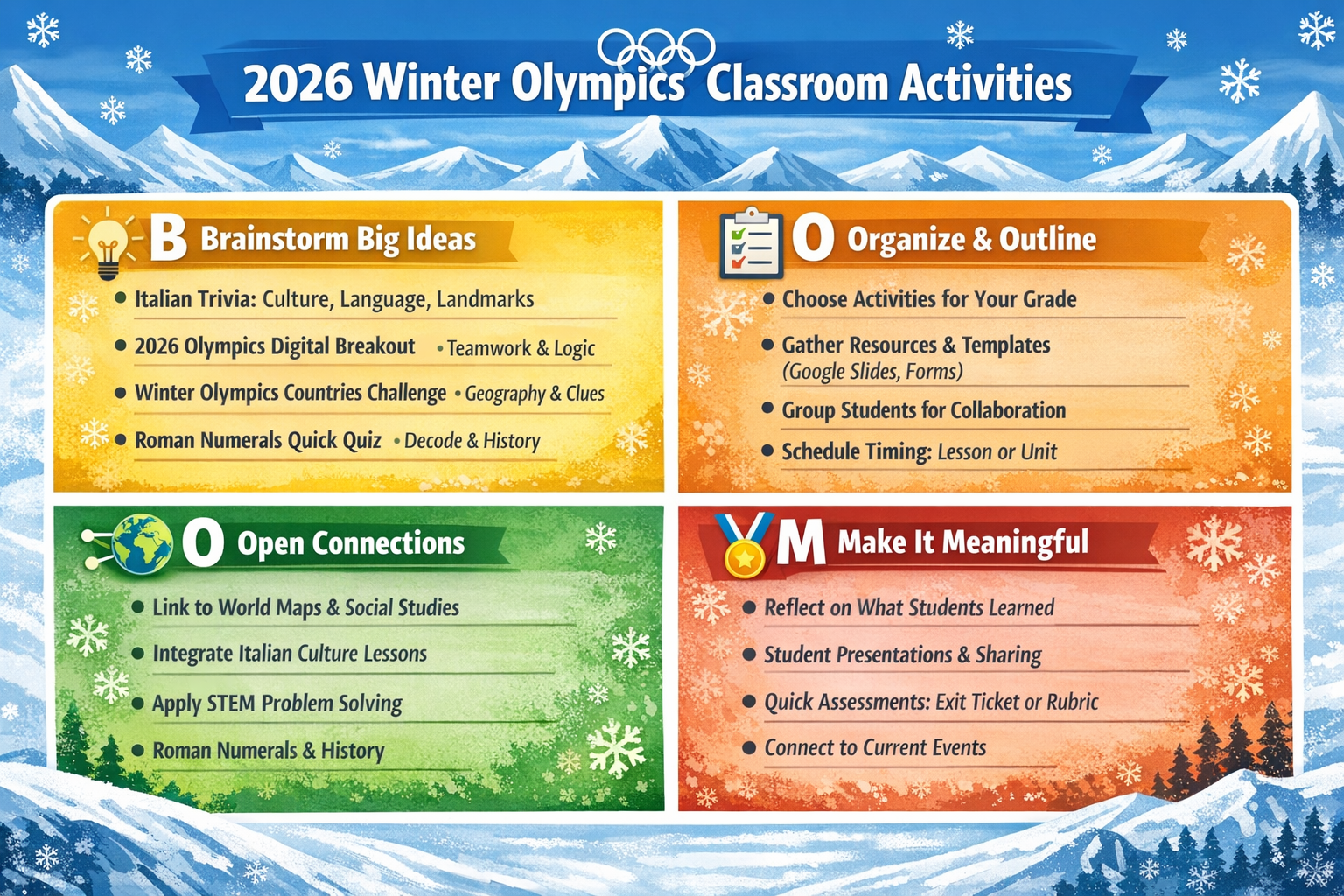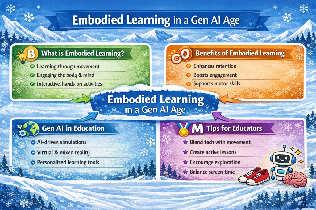 What you probably noticed right away is that it has a snow motif, snowflakes everywhere. The reason for that is that it relied on the Winter Olympics infographic as the example. It chose to add the robot, sneakers, and brain in the lower right-hand corner. At this point, I asked ChatGPT Project: