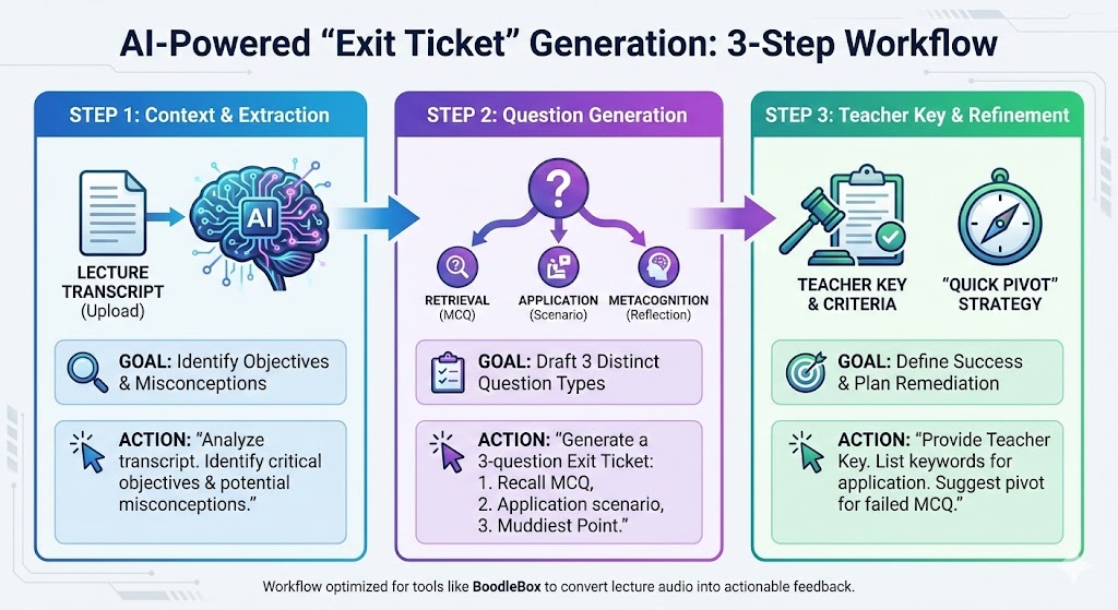 Check out these robust, low-cost alternatives to Mentimeter. Repurpose the Google Workspace tools you already own for deep classroom engagement. And, finally, don’t miss this 3-step BoodleBox workflow (prompts included) designed to transform your lecture transcripts into high-impact “Exit Tickets” in seconds. Whether you’re leading a small seminar or a massive lecture hall, these strategies ensure every student has a voice and every “muddy point” is cleared before the bell rings.