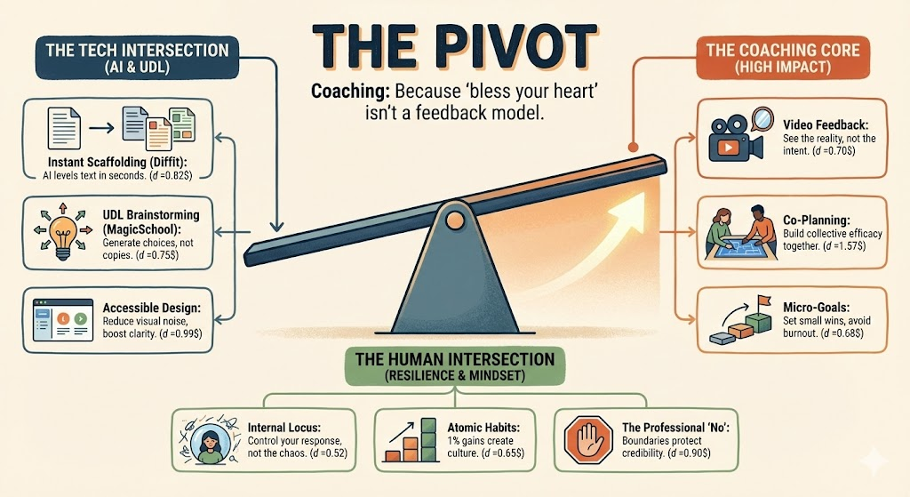 It’s a humbling spot to be in. But it’s a reminder that we don’t actually control the final goal; we only control the next rep. Whether it’s a pushup or a new UDL framework, the “shaky” part is where the growth happens. In coaching, we call that focusing on the internal locus of control. We can’t fix the state testing calendar, but we can fix the next 20 minutes of instruction.