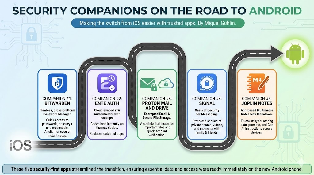 To ensure I didn’t spend endless hours getting back up to speed on Android, I made lists of my favorite iOS apps and then found Android alternatives. Three apps that made that journey easier? My password and security collection of apps. Let’s take a quick look at companion apps that transferred well from iPhone to Android, and would work vice versa.