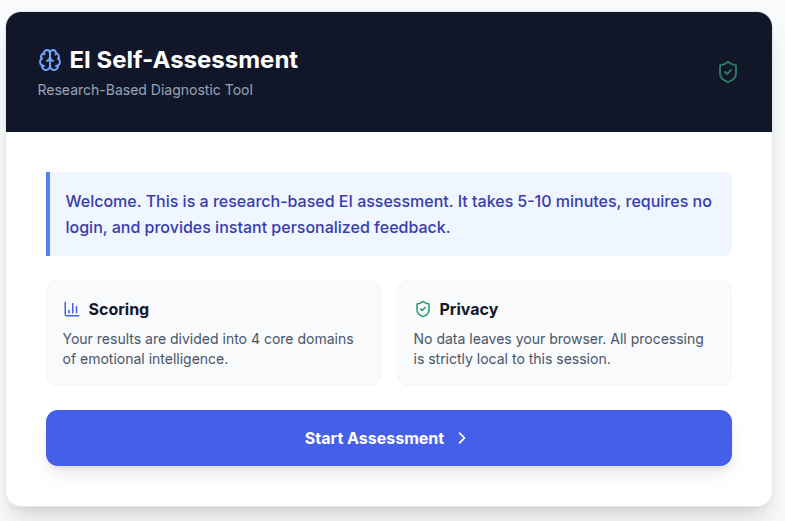 1. **The Hook:** Start with: “Welcome. This is a research-based EI assessment. It takes 5-10 minutes, requires no login, and provides instant personalized feedback.”