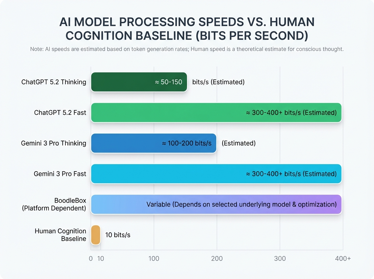 The whole train analogy is broken. When Ed Tech was slow, maybe it wasn’t. Now, Gen AI makes it impossible to keep up…or does it? The main limitation is what Mike Kentz referred to in his blog entry. That limitation is human, the 10 bits per second processing. Perhaps this diagram I asked BoodleBox to generate puts it into perspective: