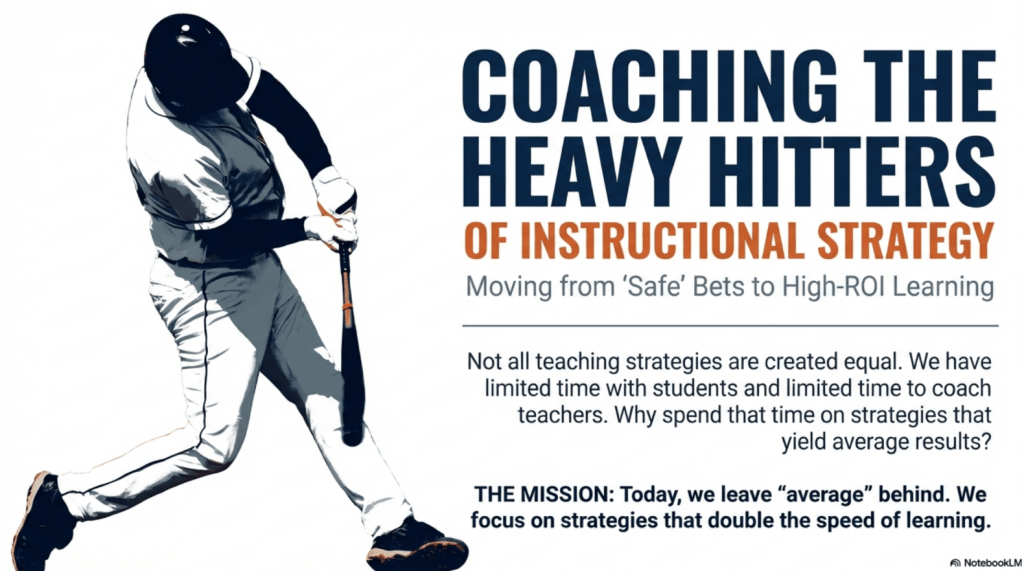 What fun it was to go over my presentation for Coaching the Heavy Hitters of Instructional Strategy. I managed to hit voice record on my phone to see how it would work. The outline is right on target. I had to laugh because the slide deck from the NotebookLM is amazingly better than my Canva-based creation.