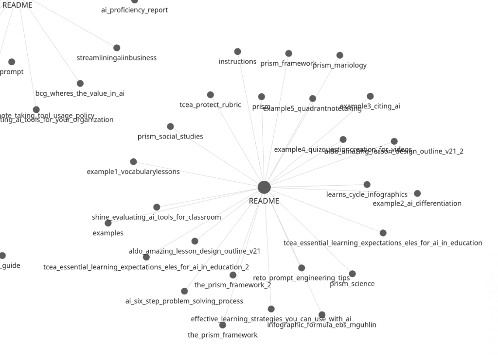 If you play around with Graph View in Obsidian, you can get an incredibly convoluted web that looks like this…I’m not sure how useful this is, but…it’s there: