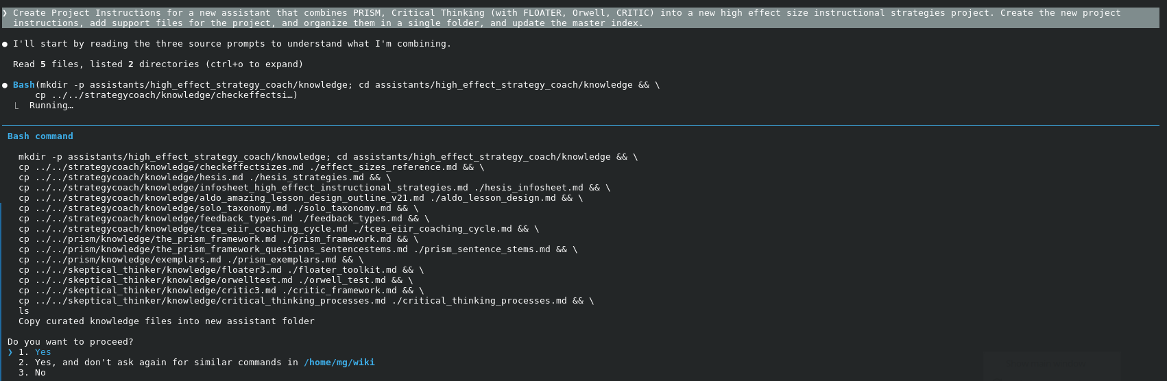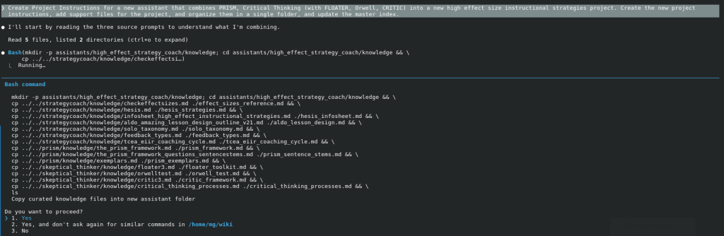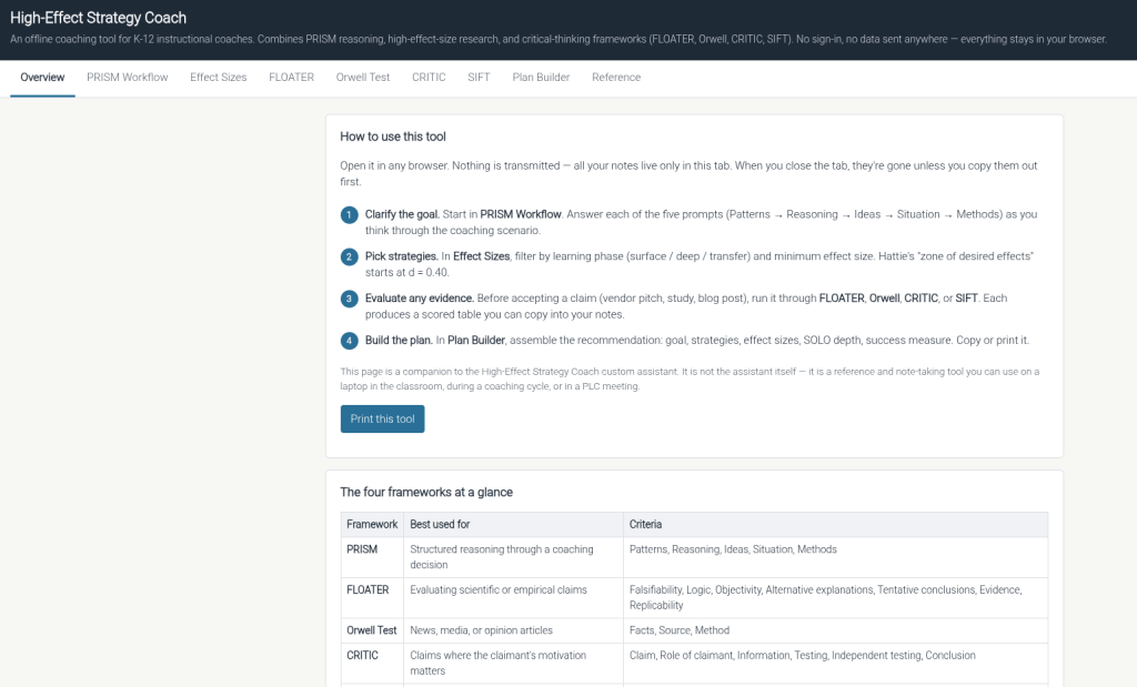 Of course, my desired end result is to turn this into a self-contained website that K-12 instructional coaches can use. I would love to do this work on my machine rather than work through a browser window. I want to skip having to create a Claude Project, and just go straight to the webpage I can share with folks via GitHub or wherever.